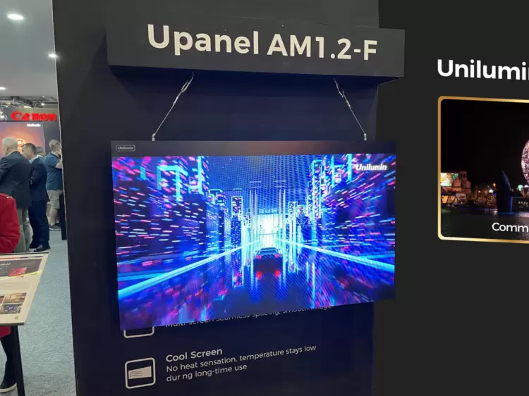 同期,洲明多款新品在ISE展进行了海外首发。如薄如婵翼、超冷屏的 Upanel AM1.2-F、亮度对比度优异的Utile MCOB 产品、专商显双面屏 UslimS2 2.5 陆续发布,展示了洲明的最新技术和实力。