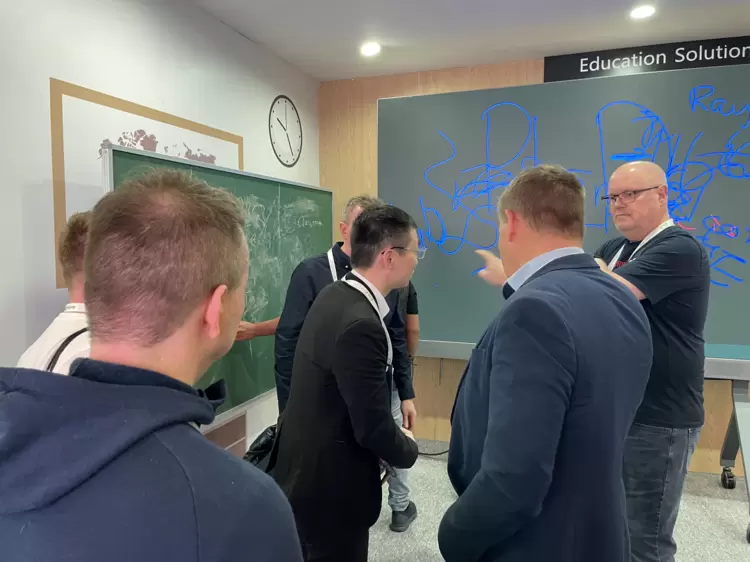智能教育作为洲明科技展位的核心场景之一,这一板块的展示为现场观众带来了全新的视觉课堂体验。UTV SC一体机系列与触摸互动黑板相连,展示了视觉支持下的便捷高效教学过程。
