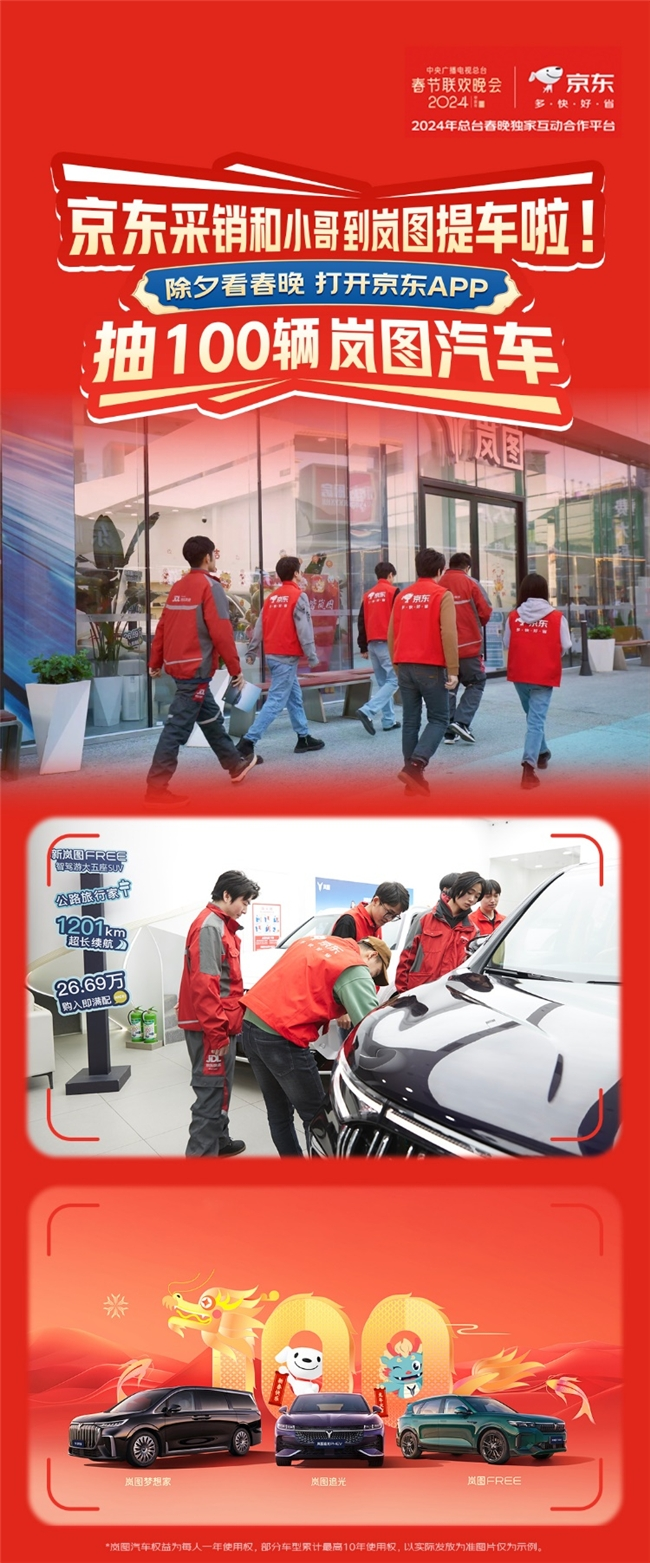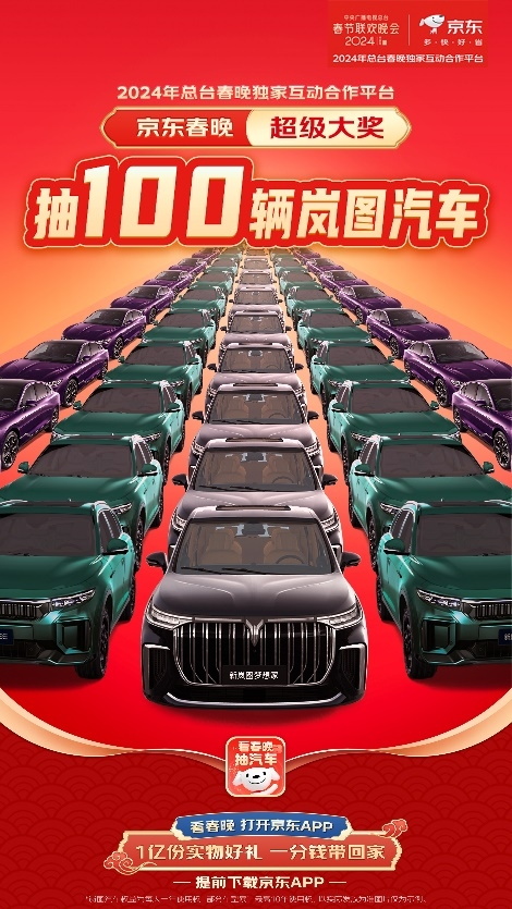 - 央视龙年春晚超级大奖公布,京东汽车将携手岚图送出100辆汽车!