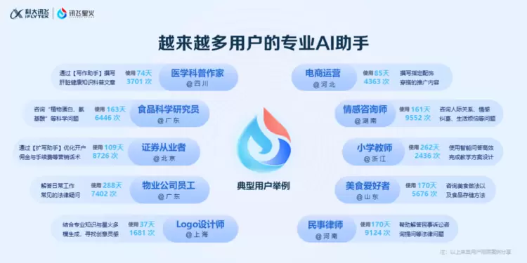 面向海量用户的个人应用,讯飞听见、讯飞星火与讯飞输入法已经赋能亿万用户。讯飞星火自发布以来,聚集超过2400万用户,已成为他们的知识宝典、灵感引擎、创意搭档和智能助手。