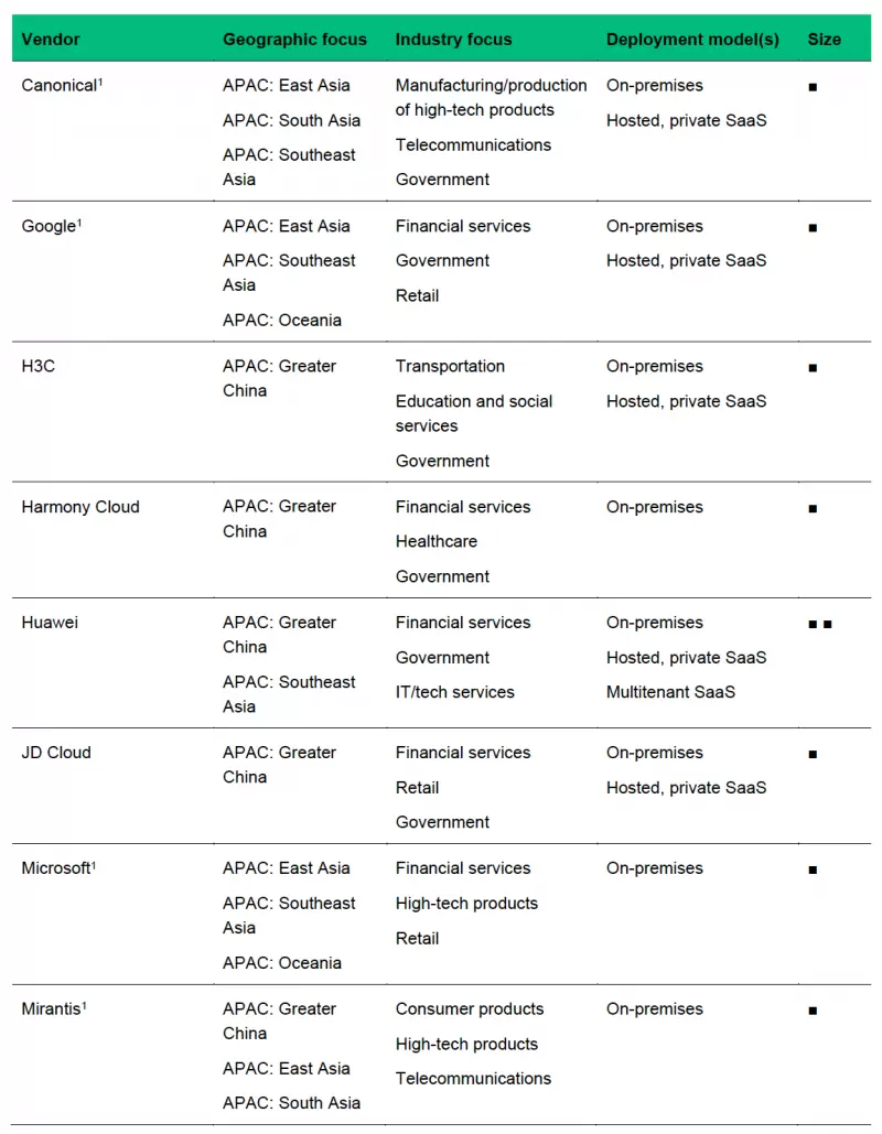 Forrester发布:亚太区多云容器平台市场格局,中国厂商占据半壁江山