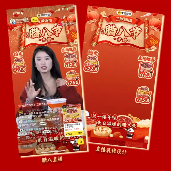 在今年的腊八节期间,三米粥铺营销不断,三米粥铺美团官方外卖账号在腊八专场活动期间,直播观看人数达到21W+次,全天直播不停歇,引导用户下单,助力粉丝销售转化。