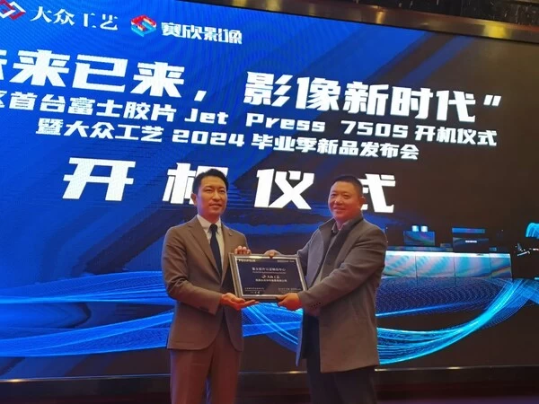 1月23日,由富士胶片(中国)投资有限公司、昆明大众冲印服务有限公司、北京赛欣科技有限公司联合主办的"未来已来 影像新时代"西南首台富士胶片Jet Press 750S开机仪式暨大众工艺2024毕业季新品发布会在云南昆明举行。