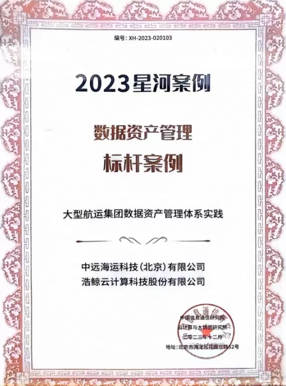 斩获2023大数据”星河”案例大奖!浩鲸科技助力航运集团构建数据资产管理体系