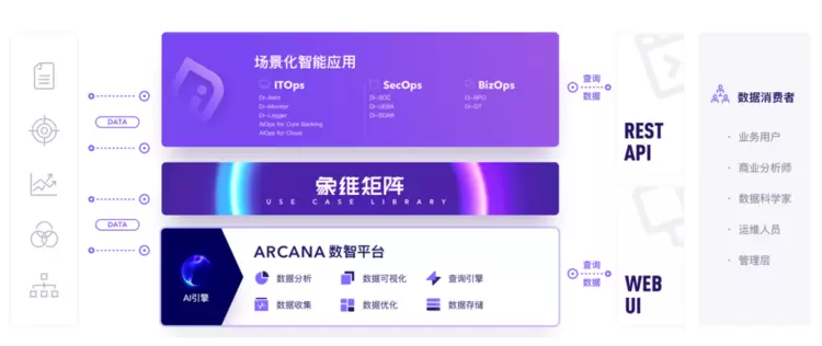 鼎茂科技于2016年开始聚焦AIOps领域,以智能运维产品切入IT运维市场,持续大力投入AI和数据技术研发,快速落地并覆盖“IT运维-安全运营-业务辅助决策”的AIOps全领域应用体系。并在此基础上不断进行创新探索,升级打造了多模态数据融合AI平台ARCANA,以此为基石持续构建整体智能化产品及解决方案。
