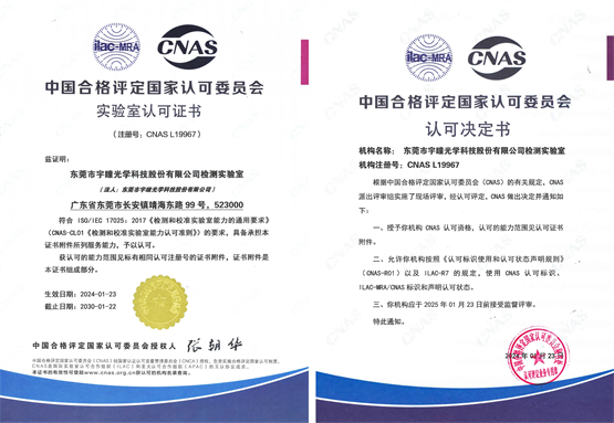 获得CNAS认可的实验室,其出具的检测报告具有国际公信力,可被全球范围内广泛接受和认可。这对于宇瞳光学而言,无疑是对其产品质量的肯定,也是对其技术研发能力的有力证明。