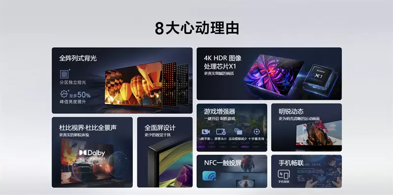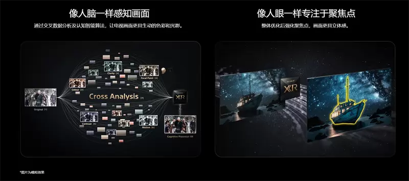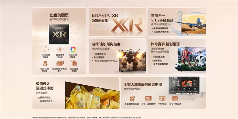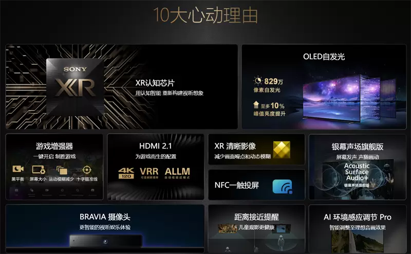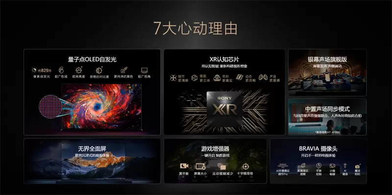 清楚了型号命名,我们就再来盘一盘索尼电视的新增功能。今年的索尼电视最大的技术亮点就是推出了升级版的XR认知芯片,进一步提升了产品的性能,并新增了XR 清晰影像、游戏增强器等新功能,可谓诚意满满。