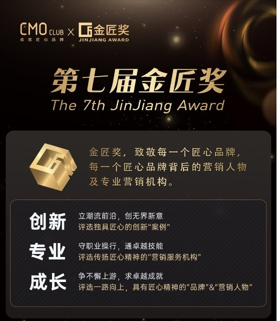 金匠奖(JIN JIANG Award)由金匠奖组委会暨CMO营销价值峰会组委会主办,CMO Club承办,旨在提升CMO价值,以“成就匠心品牌”为使命,发现独具匠心的创新营销案例,传扬匠心精神的专业营销机构,褒奖营销界一路向上的品牌和领袖人物。也是少有的以实战案例作为主要申报和评判依据的营销评选,在业界享有“营销界奥斯卡”的美誉,并与广告界的金投赏齐名——北金匠,南金投,深受营销界的认可和推崇。