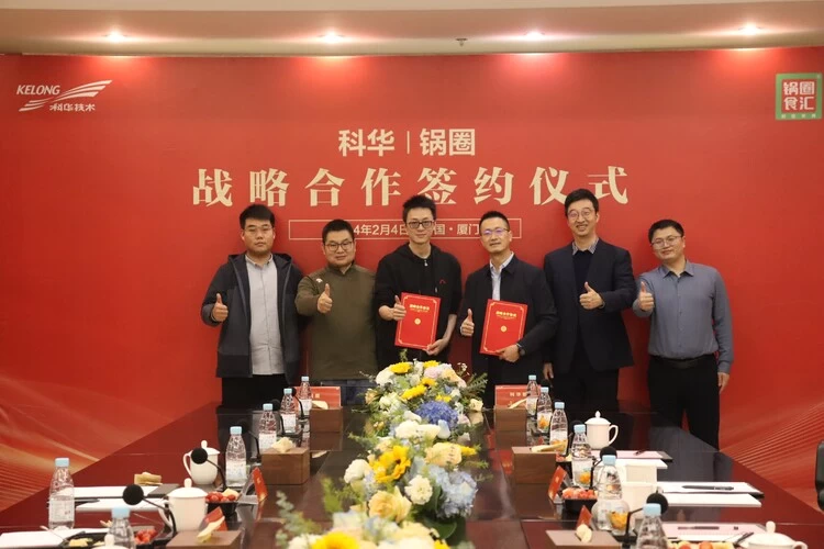 2024年2月4日,科华数据股份有限公司(以下简称:科华数据)与锅圈食品(上海)股份有限公司(以下简称:锅圈)在厦门市科华数据总部签订战略合作协议。锅圈联合创始人安浩磊、锅圈CTO曹腾跃、锅圈技术总监何泽工、科华数据高级副总裁陈晓、科华云集团副总裁欧阳江涛、科华云集团华东区副总经理林黎阳等出席签约仪式。