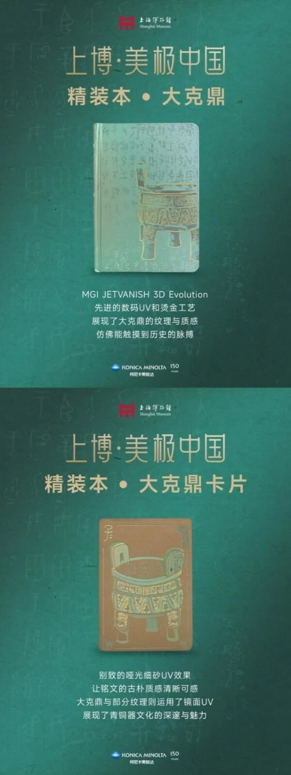 此次"上博·美极中国"系列文创均由MGI JETVANISH 3D EVO印刷制成。作为数字印后特效的佼佼者,MGI JETVANISH 3D EVO可为印品追加精美的印后增效工艺,赋予其精巧细致的视觉艺术魅力。