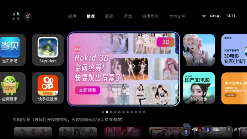 在内容生态的构建上,Rokid展现出了其前瞻性和创新力。从携手Google打造全球首款AR版Android TV设备,到丰富的AR内容生态建设,Rokid已积累了200多款内容,涵盖了绝大部分用户日常工作、生活、娱乐中的应用类型。同时,Rokid还携手bilibili发起“全球首届3D空间视频挑战赛”,让更多的UP主加入进来,产出更多优质的3D内容,促进了AR内容生态的多元化发展。