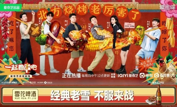老雪与爱奇艺TOP1美食类综艺《一起撸串吧》展开协同合作,捆绑IP抢占烧烤场景,赋能终端。