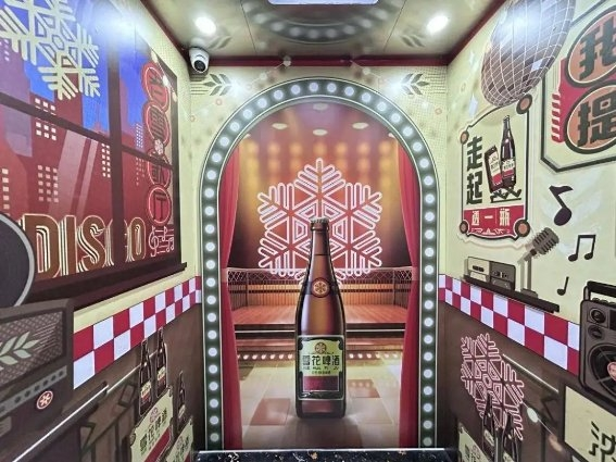 其次,打造沉浸式、互动式品牌体验,创设线下创意体验场景。打造电梯版“老雪酒馆”与“老雪歌厅”,营造潮流复古的氛围感与沉浸感,花式玩法吸引众多消费者打卡,传递品牌价值与态度。沉浸空间内进行品牌场景打造,潜移默化地在消费者心中形成记忆锚点,以场景化事件营销高效提升品牌认知。