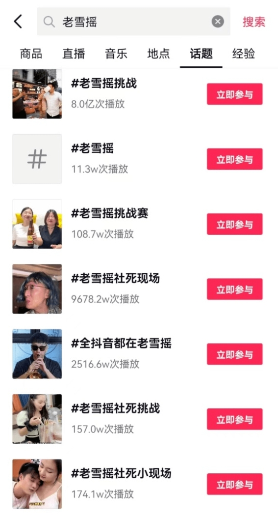 老雪极具烟火气和复古潮流的品牌调性,与属地金句、魔性舞蹈存在天然的高适配度,直戳年轻消费者痛点,以情绪影响力吸引用户兴趣。早在2022年,老雪就凭借神曲《老雪摇》出圈,如今借势淄博烧烤火爆、摇摆舞席卷全网,老雪金句、老雪摇再次出击。“老雪一入口,江湖有朋友”“关系铁 喝老雪”等金句朗朗上口,魔性“老雪摇”更是引爆整个夏天,老雪发起的诸多短视频挑战吸引了明星、达人、素人的全民广泛参与。