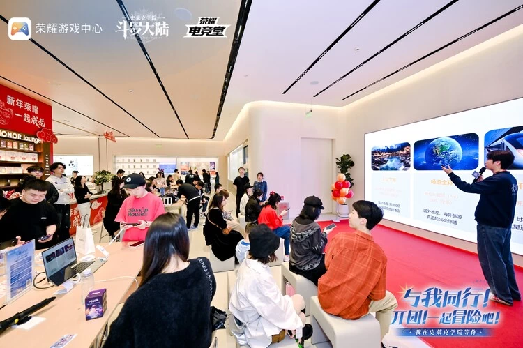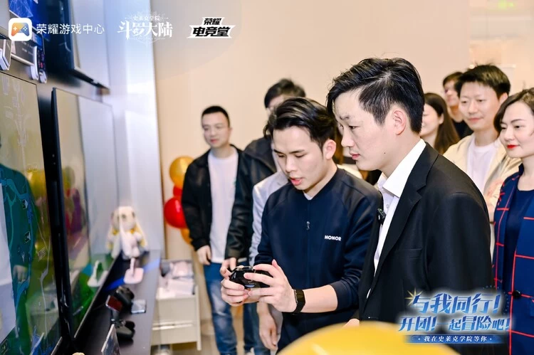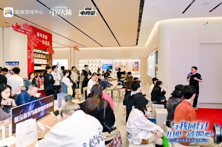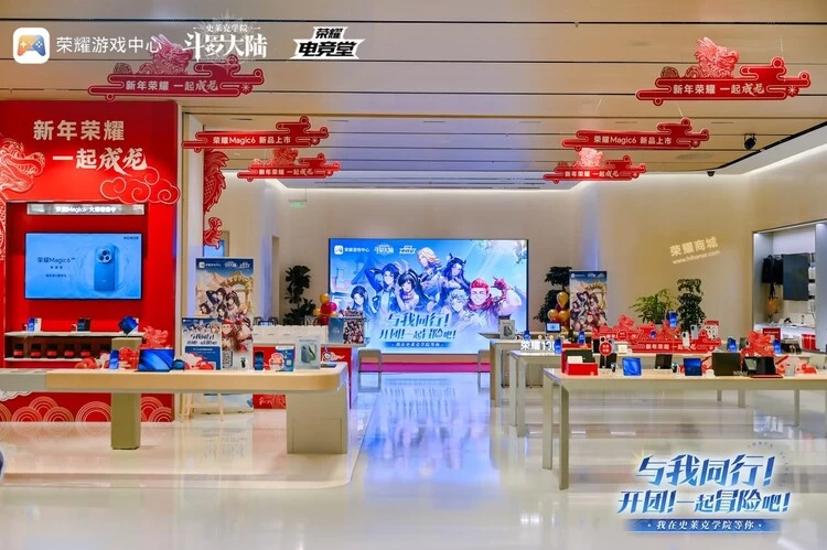 2月3日,荣耀游戏以「与我同行!开团!一起冒险吧!」为主题,联合中手游《斗罗大陆:史莱克学院》为玩家打造了覆盖荣耀在深圳、福州、太原三城高端直营店的游戏主题活动,荣耀游戏通过OS场景线上线下引流、门店主题活动、手机技术性能加持、IP营销合作等多种形式搭建起品牌、游戏和消费者沟通的平台,给玩家带来差异化的高品质游戏体验的同时,实现品牌双方精准引流与高强度曝光,并有效拉动游戏在荣耀渠道的付费表现。
