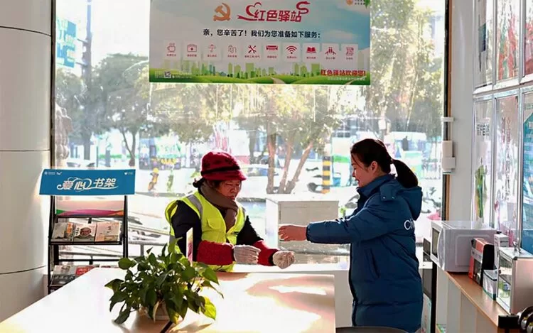走进湖北省咸宁市温泉路移动营业厅,免费饮用水、手机充电插排、爱心雨伞、便民药箱等爱心设施有序陈列。“我已经干了20多年的环卫保洁工作,每年冬天寒潮来临的时候就很难熬。现在有了红色驿站,渴了、累了可以到这儿来喝水、休息,感到特别暖心。”来营业厅补充“能量”的沈阿姨乐呵呵地说道。