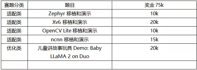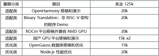 本次RISC-V锦标赛设有适配夺旗赛和优化竞速赛两种形式。比赛分为个人组和团体组,个人组奖金独享,团队组奖金分配由团队自行决定。主办方鼓励参赛者将代码回馈贡献给上游社区。