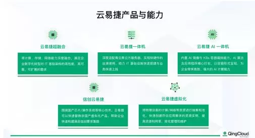 定位为“专为中小算力规模打造的轻量化私有云产品”的青云科技云易捷,如今已经推出5个产品:云易捷超融合、云易捷一体机、云易捷AI一体机、信创云易捷、云易捷虚拟化。