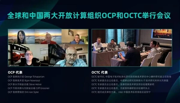 成立首年,通过组织举办和广泛参与开放计算及数据中心领域的技术峰会、产业论坛及技术与标准分享交流会等活动,OCTC积极活跃开放生态,凝聚生态成员共创、共建、共享,并与全球开放计算组织加强合作交流,携手促进开放绿色算力中心创新发展。2023年10月,OCTC作为中国开放计算组织代表与全球开放计算组织OCP基金会举行交流会,双方领导及专家代表首次会晤,希望以"破壁"、"开放"的态度共同推动开放计算的广泛应用,通过数据中心产品技术协同创新、知识产权成果共创共享、标准规范共建等,加速行业数智化、绿色高效发展。