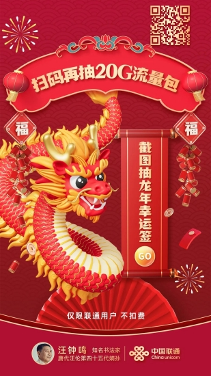中国联通龙彩铃新年签,书法名家挥毫送福运!