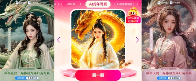 百度网盘推出AI春节活动,几秒生成龙年写真、一键获得自家宠物表情包