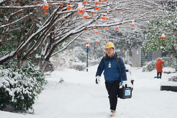 大雪中,湖北移动工作人员上门为用户提供宽带服务