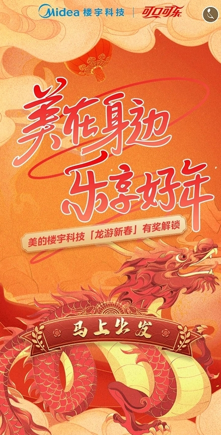 为了回馈广大用户,同时让更多消费者深入地了解到美的楼宇科技的业务方向和样板案例,美的楼宇科技联合中粮可口可乐特别推出了新春有奖互动H5小游戏「龙游新春」。