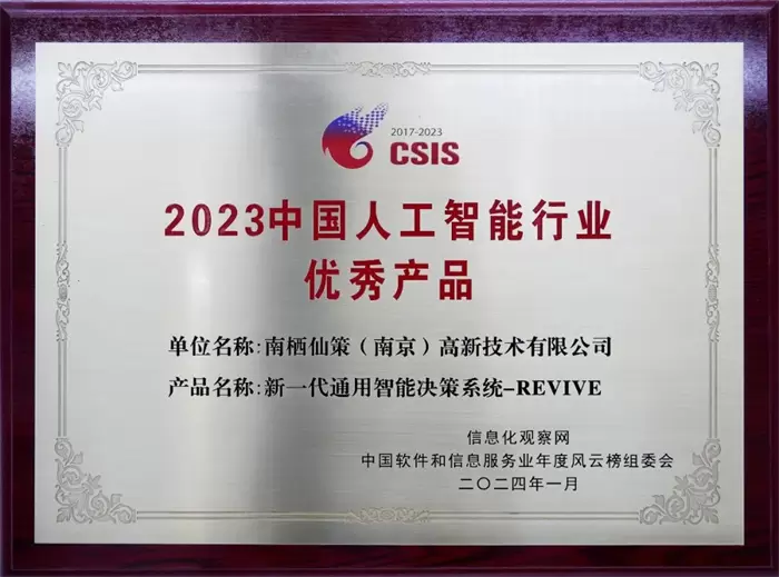 与此同时,南栖仙策申报的“新一代通用智能决策系统——REVIVE”也获得了组委会专家、评委的一致认可,成功获评“2023中国人工智能行业优秀产品”。