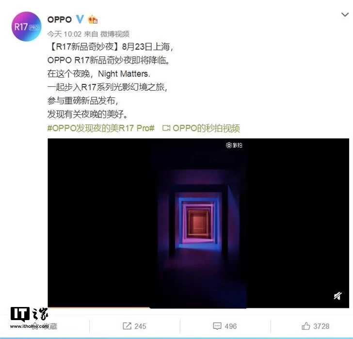 OPPO官宣OPPO R17发布会:8月23日上海见!