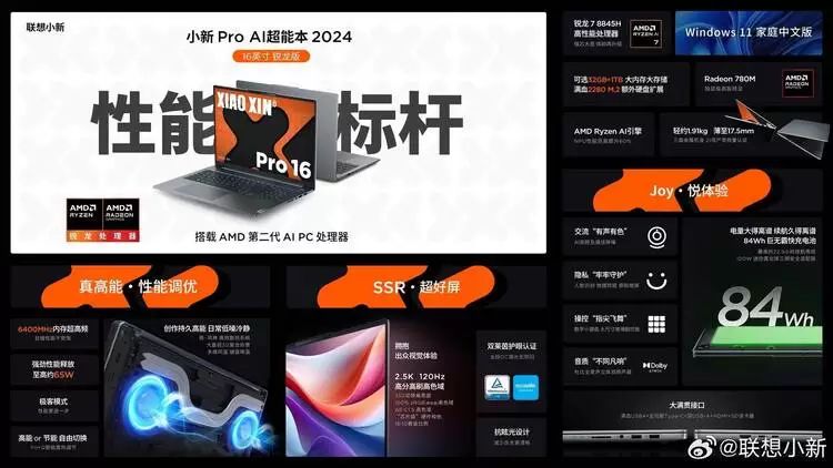 2024年,消费轻薄本的领军品牌联想小新,继续致力于其明星旗舰系列——小新 Pro产品的全新升级。小新2024AI PC新品搭载第二代 AMD AI PC处理器——AMD锐龙 8040系列,构建CPU+GPU+NPU联合组成的AI加速架构,相比上一代处理器,NPU人工智能算力至高提升60%,为正在寻找功能强大、性能可靠、能够运行先进AI体验的笔记本电脑的创意专业人士、游戏玩家和主流用户带来越级体验。