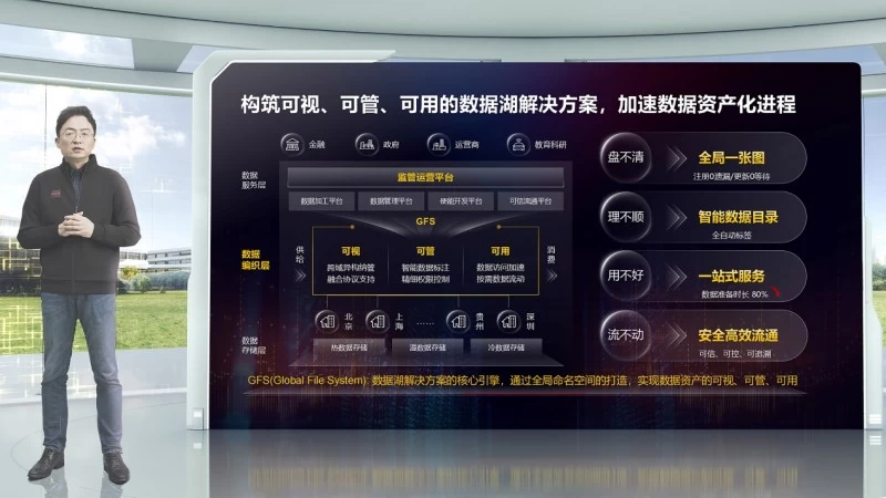 华为推出基于GFS全局文件系统的数据湖解决方案,实现数据资产的可视、可管、可用。数据湖解决方案具备三大能力:首先是数据资产一张图,实现跨域、跨站点、跨厂家等复杂数据的全局可视、实时更新;其次是数据目录智能化,满足数据自动标签、聚合、检索、呈现,推进数据按内容、合规、热度等维度的全自动化分类分级;最后是数据流通安全高效,通过构建数据可信空间,确保流动可信、可控和可追溯。值得一提的是,华为正式宣布open-GFS开源计划,将数据湖解决方案核心引擎GFS的能力开放给伙伴和最终用户,通过开源加速数据产品开发进程,助推企业融入数据要素流通生态。