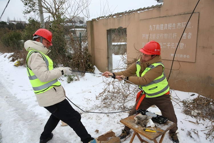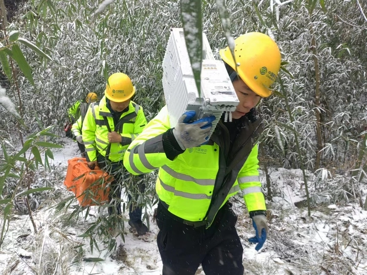 湖北移动抢修人员顶着寒风进行抢修,全力保障网络平稳运行