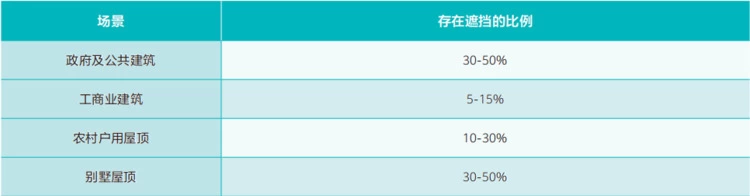 •分布式屋顶遮挡情况多,为避开遮挡,可铺设组件空间面积少,屋顶资源利用率低;