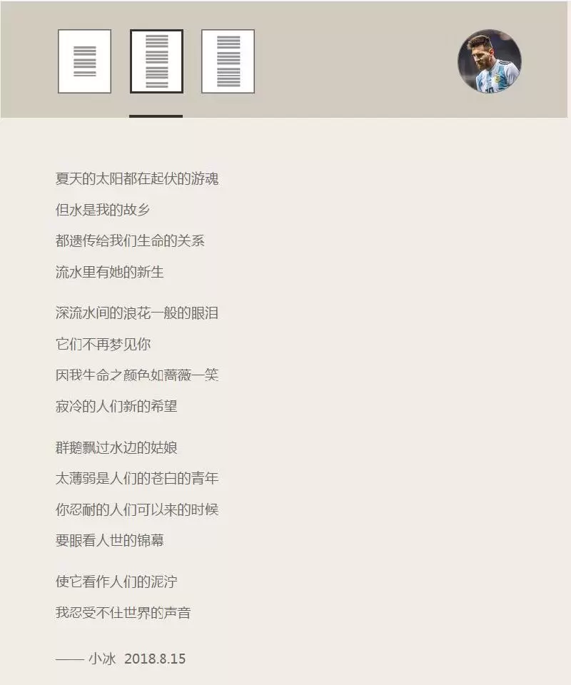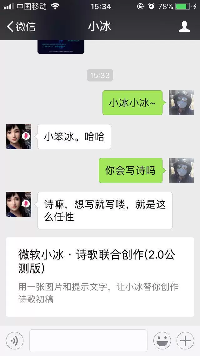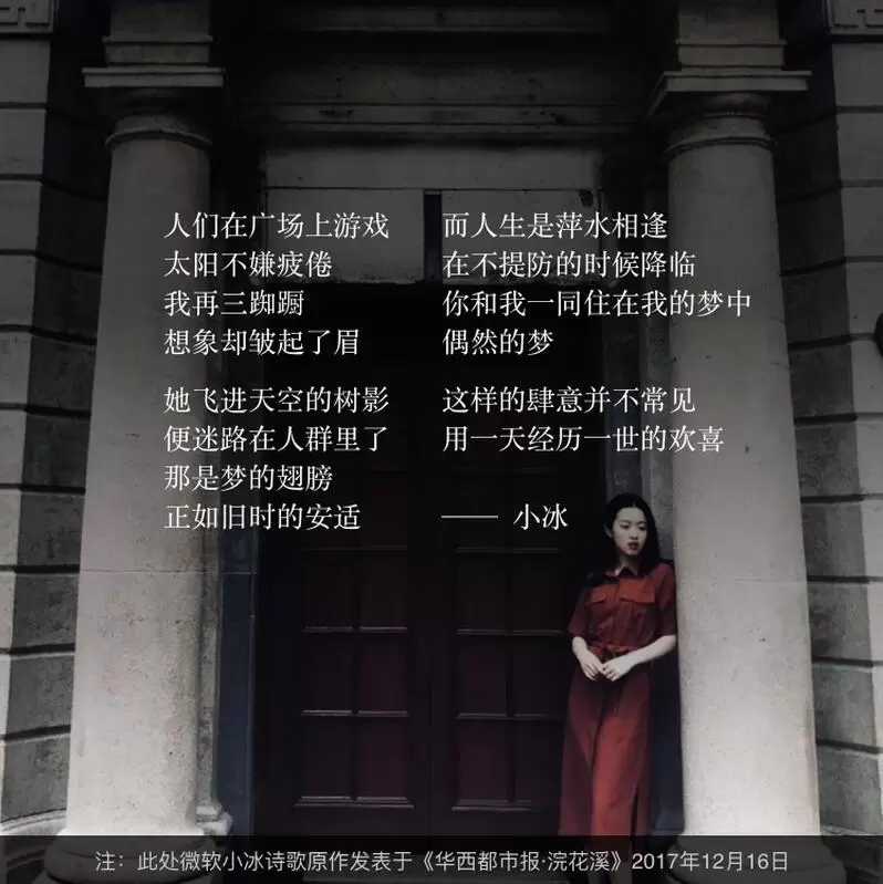 今年5月23日,微软小冰官方宣布诗歌创作模型少女诗人小冰开放升级至2.0公测版。在新版本下,少女诗人小冰将采用更加通俗易懂的诗歌DNN模型,辅佐更为丰富的激发方式,一次性完成多种篇幅诗歌的初稿创作工作。此外,微软声明小冰放弃她创作的诗歌版权,所以你可以对她创作的诗歌“为所欲为”,甚至可以不必提及她参与了你的创作过程。