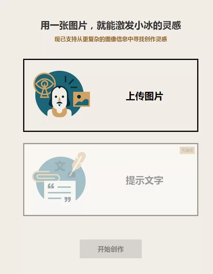 可以给小冰看一张图片,或者告诉她一句话激发创作灵感