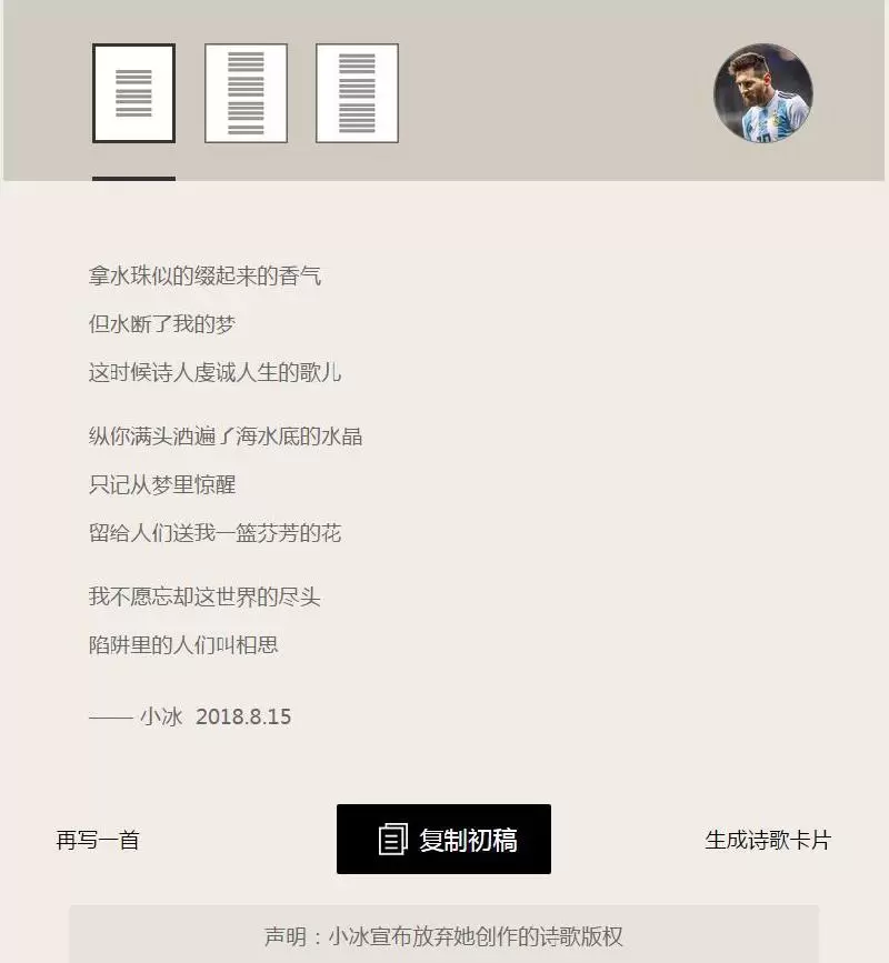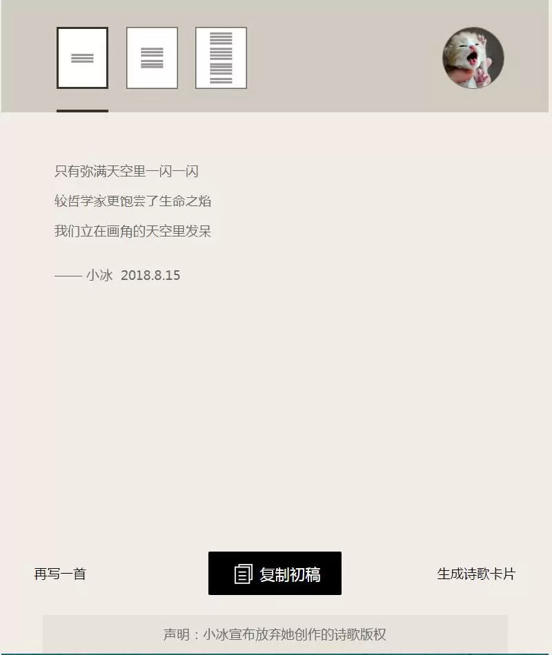 很快,小冰完成了诗歌初稿的创作,而且一次创作了三篇