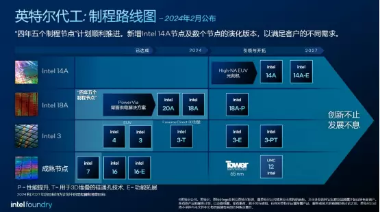 •英特尔代工宣布最新制程路线图,包括Intel 14A制程技术、专业节点的演化版本,及全新的英特尔代工先进系统封装及测试(Intel Foundry Advanced System Assembly and Test)能力,以助力客户在AI领域取得成功。