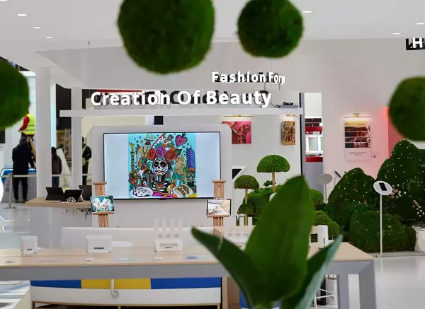 华为终端展馆的设计以品牌旗舰店为灵感,汲取旗舰店外立结构基因,打造拥抱体验式场景。馆中设置了ULTIMATE DESIGN(非凡大师)、Fashion Forward(时尚,更跨越)、XMAGE(华为影像)、Creation of Beauty(创作至美)、Fitness & Health(运动健康)等体验区,展现了华为以创新的技术,为消费者打造个性化生活方式的独特理念。