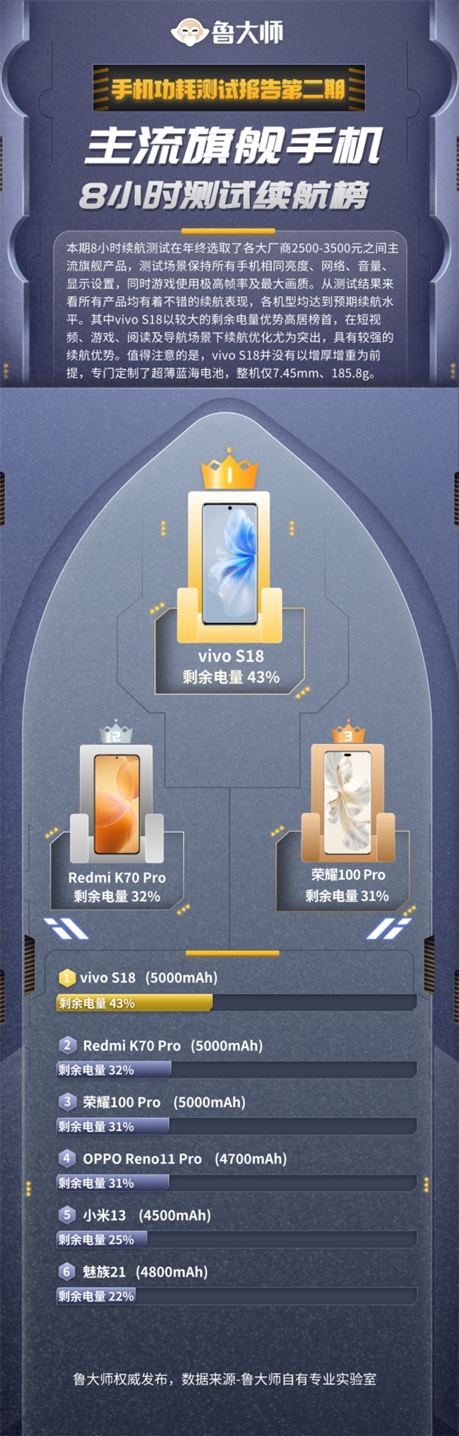 鲁大师功耗测试报告第二期:vivo S18夺冠,蓝海电池有点东西