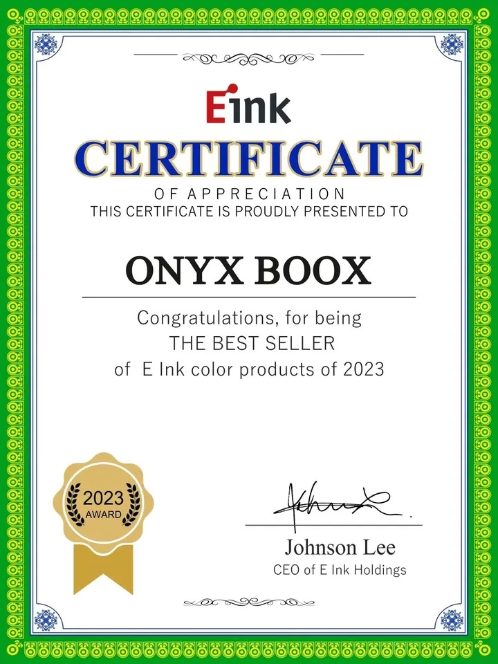 前不久,Eink元太科技作为全球电子纸模组生产的龙头企业,为文石BOOX颁发了“文石BOOX 2023年彩墨屏销量第一”的荣誉证书,肯定了文石BOOX在彩色墨水屏领域的市场地位和突出贡献。据了解,文石BOOX已经连续3年扎根彩色墨水屏产品领域,过往发布的多款彩色墨水屏产品均获得消费者认可,在市场销量上摘得桂冠。