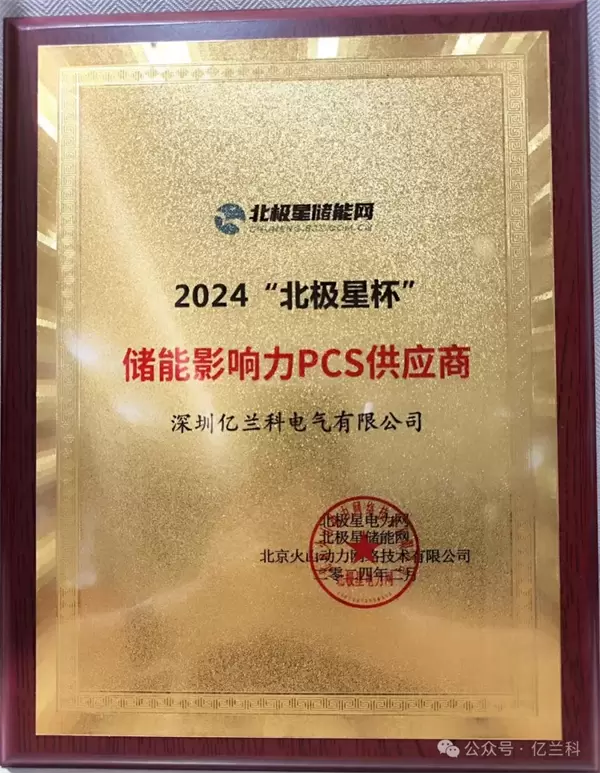 荣耀时刻,亿兰科获2024北极星杯储能影响力PCS供应商奖!