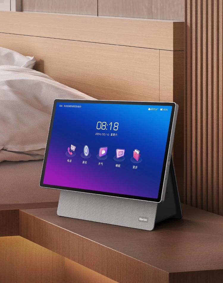 皓丽酒店智显屏采用11英寸4K超清触摸显示屏,是全新一代多功能智慧屏产品,可以让酒店服务送上门、让酒店宣传更生动。