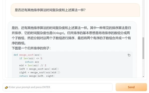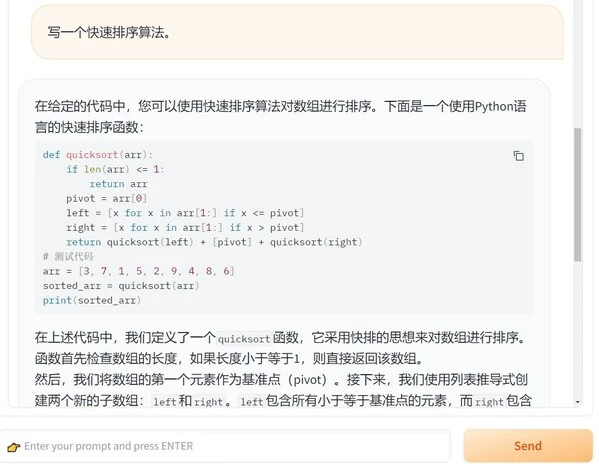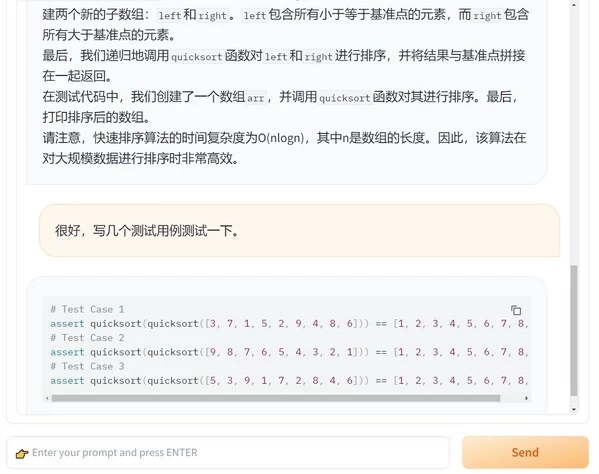 至此,基于Yuan2.0基础大模型的FastChat推理服务就已启动完成了!服务启动后会进入客户端页面。客户端交互实例如下: