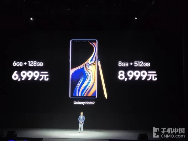 三星Note9分为两个版本,6GB+128GB版为6999元,8GB+512GB版为8999元,将于8月31号首销。
