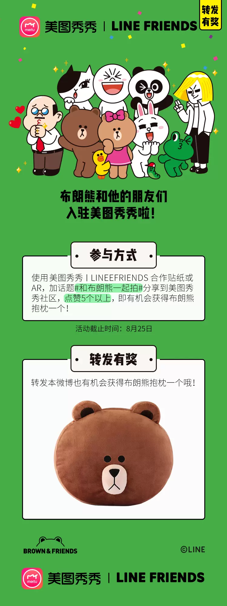 和布朗熊一起卖萌,美图秀秀联合卖萌天团LINE FRIENDS搞了件大事!