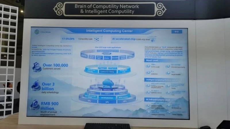 在AI大模型加速发展的背景下,中国移动紧跟智算产业发展趋势,持续升级智算基础设施建设,构建“N+X”智算资源布局体系。其中,作为在建的全球运营商最大单体智算中心,中国移动呼和浩特智算中心AI算力总规模达5.5EFLOPS(FP16),入选“2023年度央企十大超级工程”,为人工智能创新发展夯实算力基础。