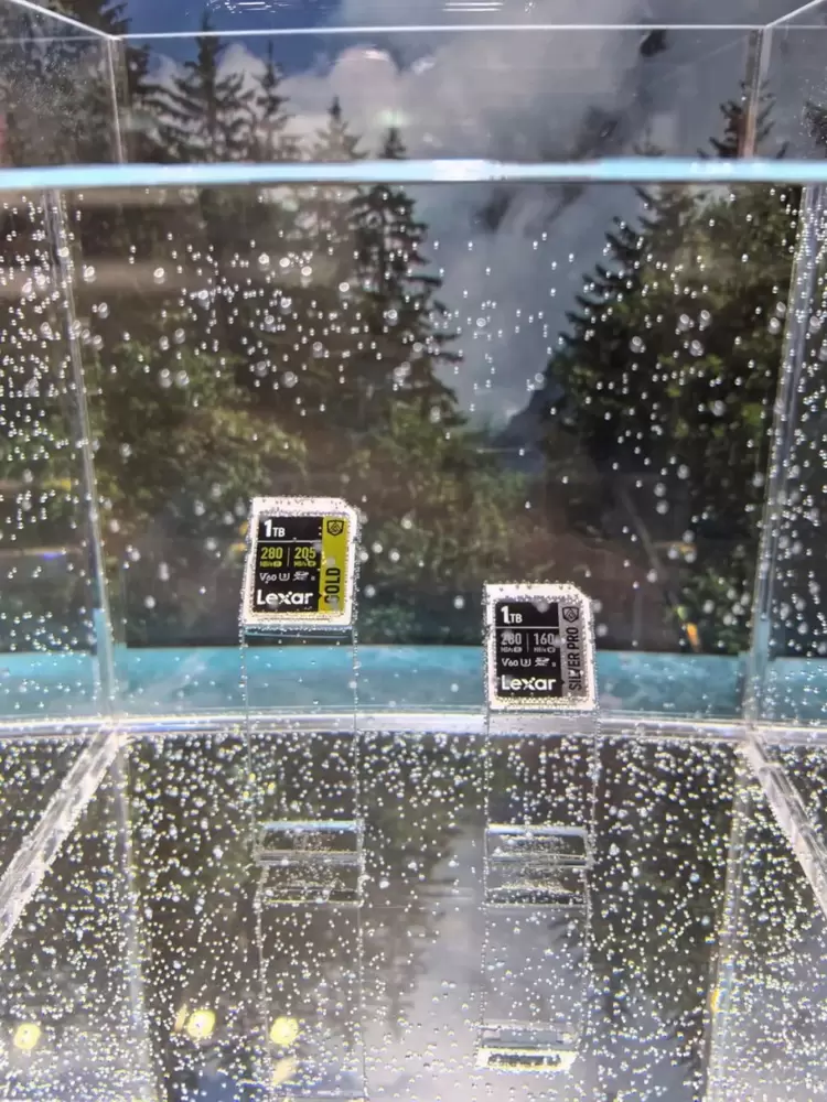 ARMORGOLDSDXC™UHS-II存储卡和ARMORSILVERPROSDXC™UHS-II存储卡拥有出色的三防性能,抗压强度达180N,即可承受180牛顿(约18公斤)的重力,同时拥有IP68级别防水与防尘的能力,能承受5米跌落。在性能方面,这两款存储卡提供最高1TB容量,280M/s读取速度,支持6K视频拍摄、无损压缩RAW格式照片拍摄和超高速连拍等,是户外工作中最值得信赖的数据存储伙伴。