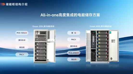 产品采用单簇热管理及高效液冷散热,一般单簇电芯温差控制≤3C°,温度均匀性更好,可延长电池使用寿命,提高系统安全性;基于数字化平台,具备热失控精准预警、安全状态评估等功能,有效降低安全隐患;消防系统采用三级消防系统+五级熔断机制,主动排风和被动泄压相结合,覆盖了包括柜内PACK级探测与喷射+全舱水浸没+全舱排风、泄爆,并且从电芯级、簇级到消防系统等多个层级,形成了一套完整的联动安全保障体系。