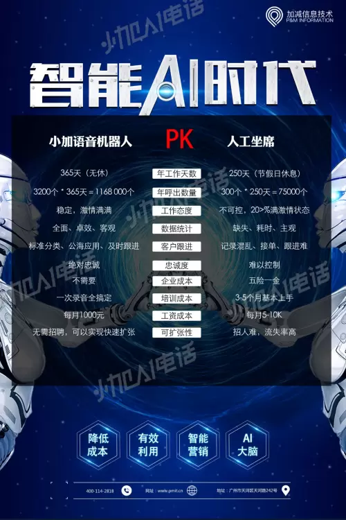 与传统人工销售相比,小加AI语音智能机器人有以下技术优势。