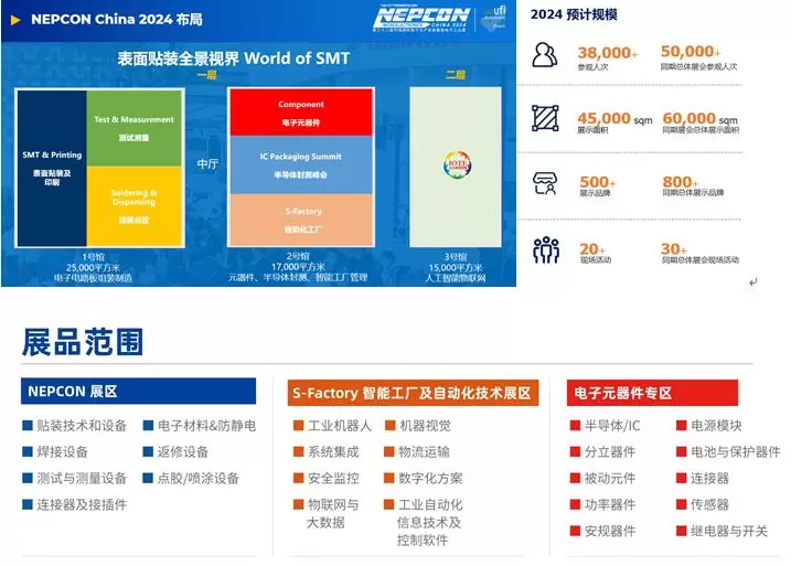 本届展会现场将汇聚超500全球前端众多电子领域企业及品牌参展,覆盖SMT、PCBA先进制造、半导体封测、自动化组装及测试、电子器件及物料、EMS代工服务等相关领域的新设备、新材料及新技术解决方案。